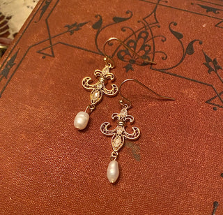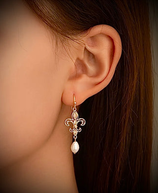 Fleur de Lis Freshwater Pearl Earrings