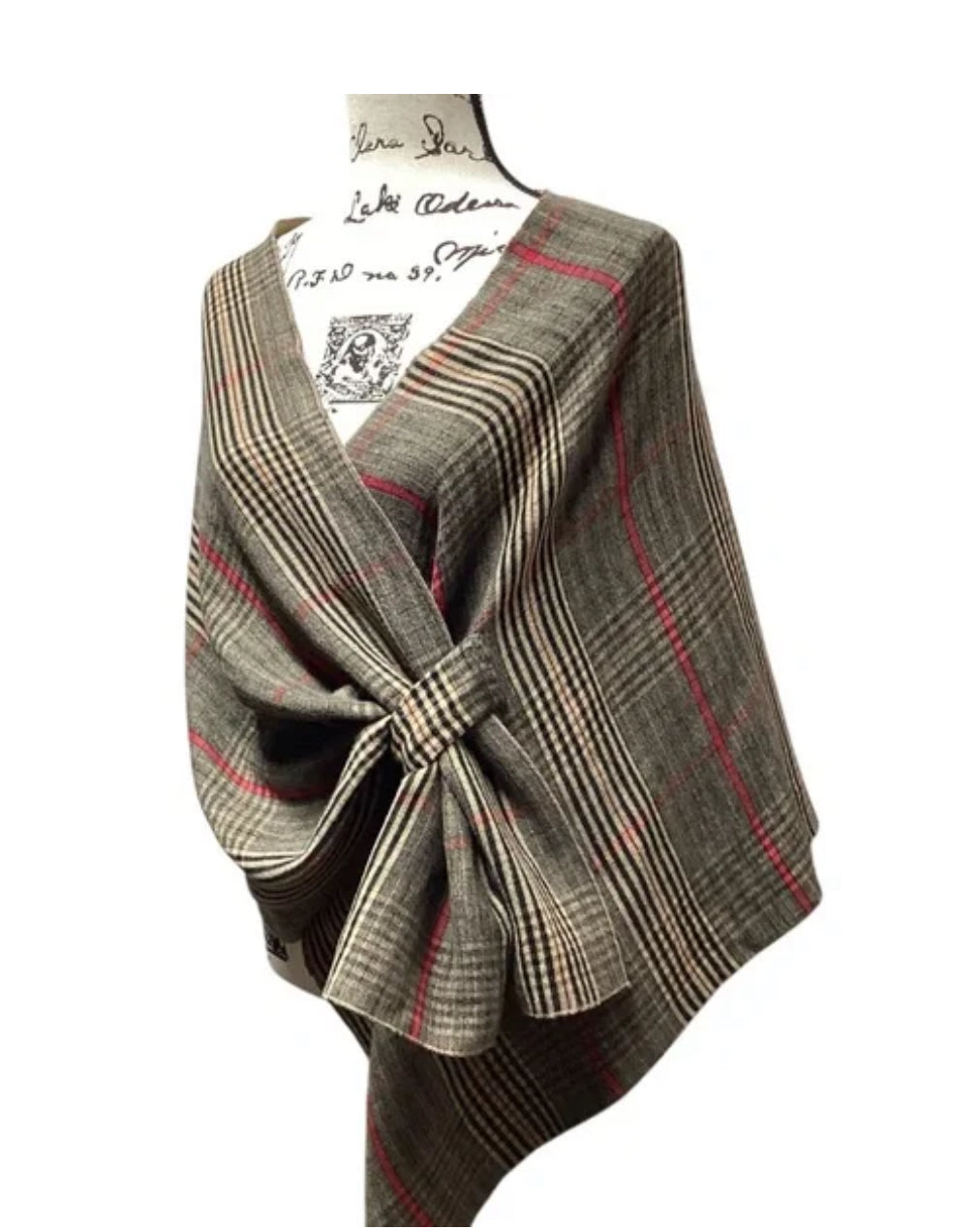 Inevitably, you sit down for a charming meal or a glass of wine with friends and you end up chilled to the bone because of arctic air conditioning. This clever little wrap is like a warm hug around your shoulders while tailored with a flattering drape and keyhole closure. This buttery soft wrap will be a constant comfort and we leave ours in the trunk of our cars for easy access. Perfect accessory for perusing fall festivals, airline flights or any place you might catch a chill. One size.