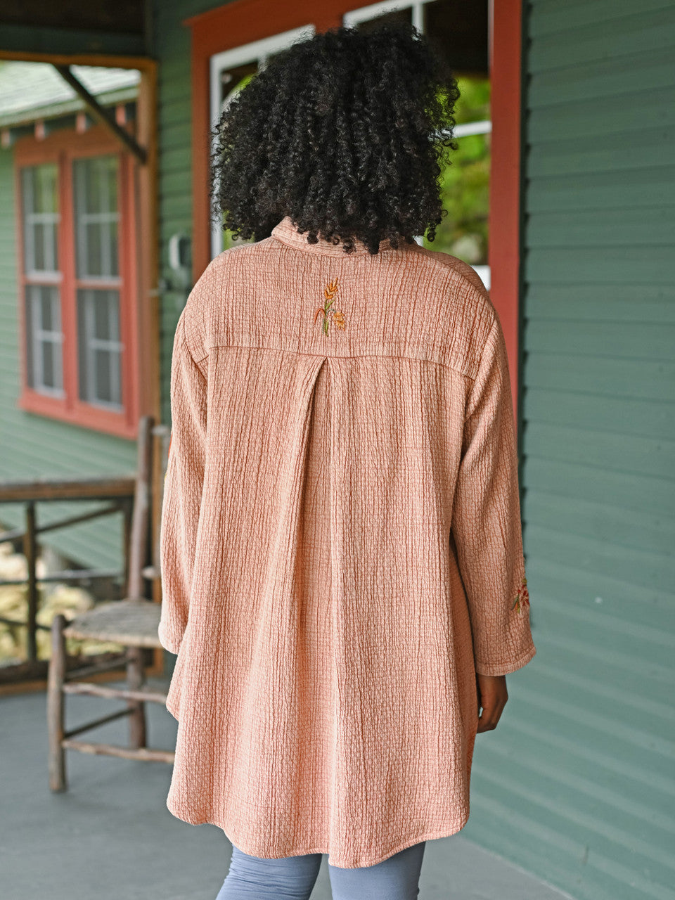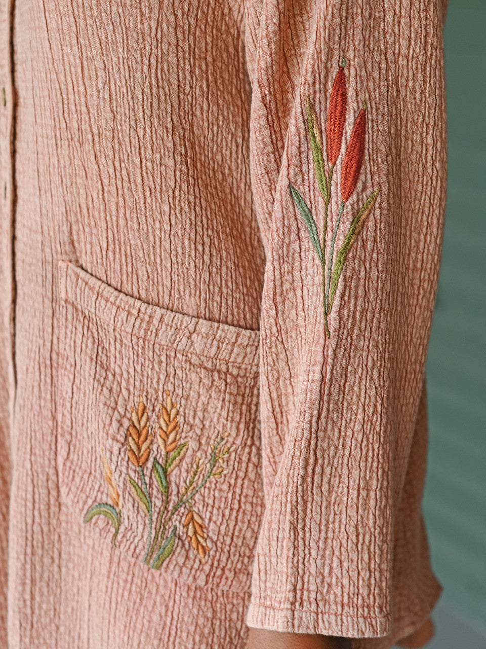 Live in the sort of beautiful, soul nourishing cotton that lives and breathes 'en plein air.' Accented with gorgeous hand-guided embroideries inspired by nature and oversized pockets.