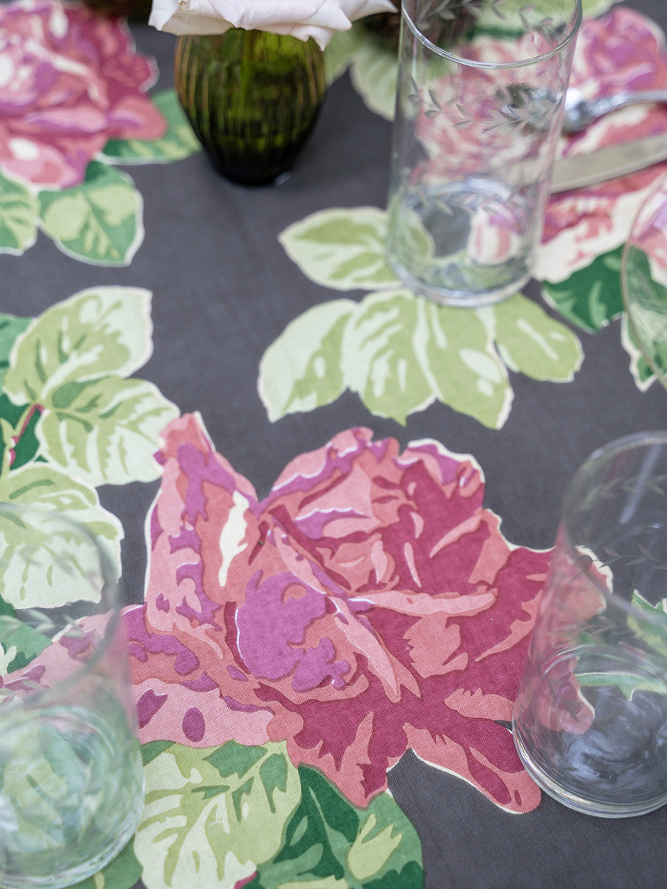 A new signature print! Inspired by an antique French textile with exquisitely rendered large-scale roses and crafted from our classic cotton on a charming mocha ground.