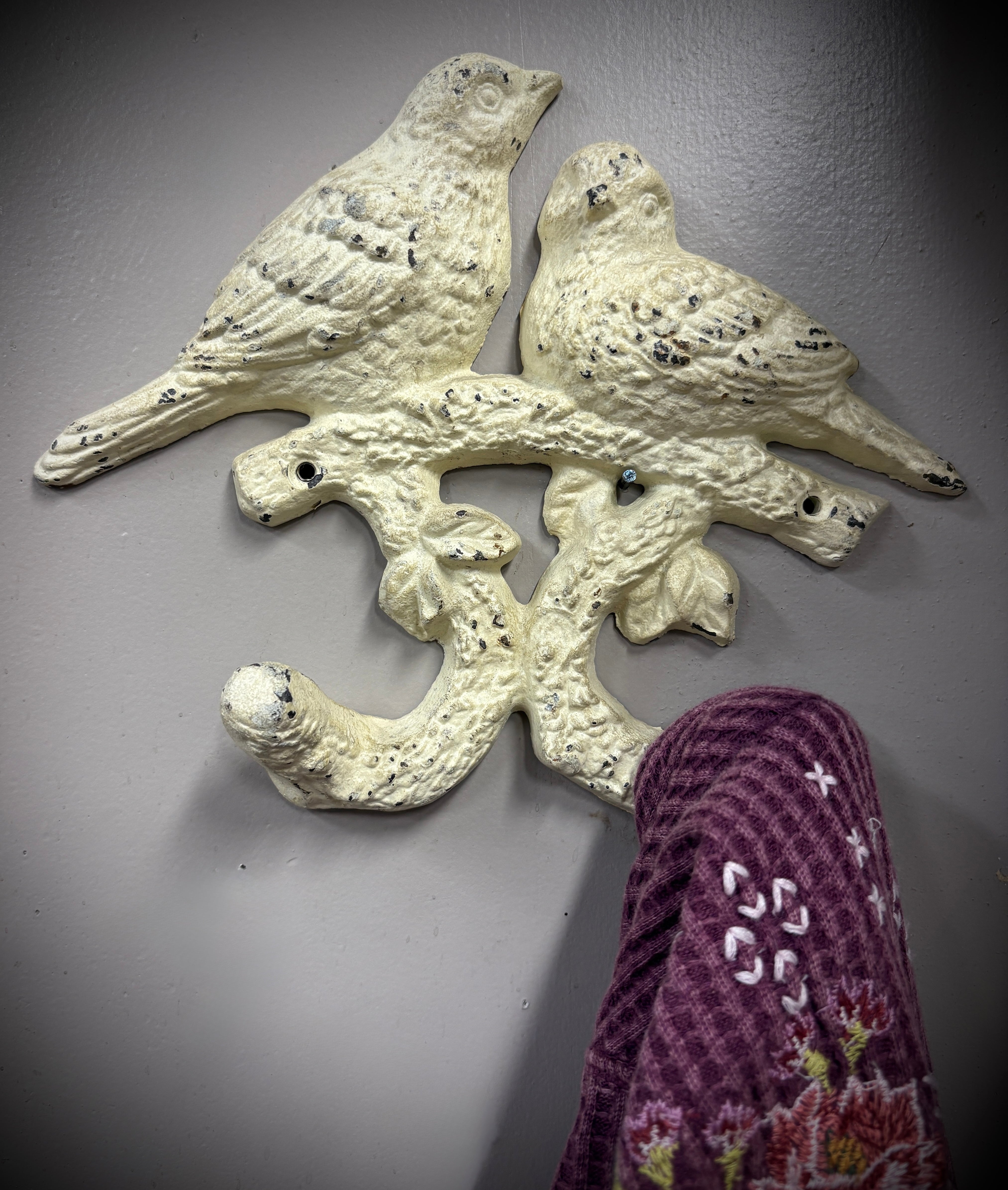 A Victorian farmhouse relic endures, cast in iron and painted French cream. Cast iron. Dimensions: 8 (w) x 1 (l) x 7 (h