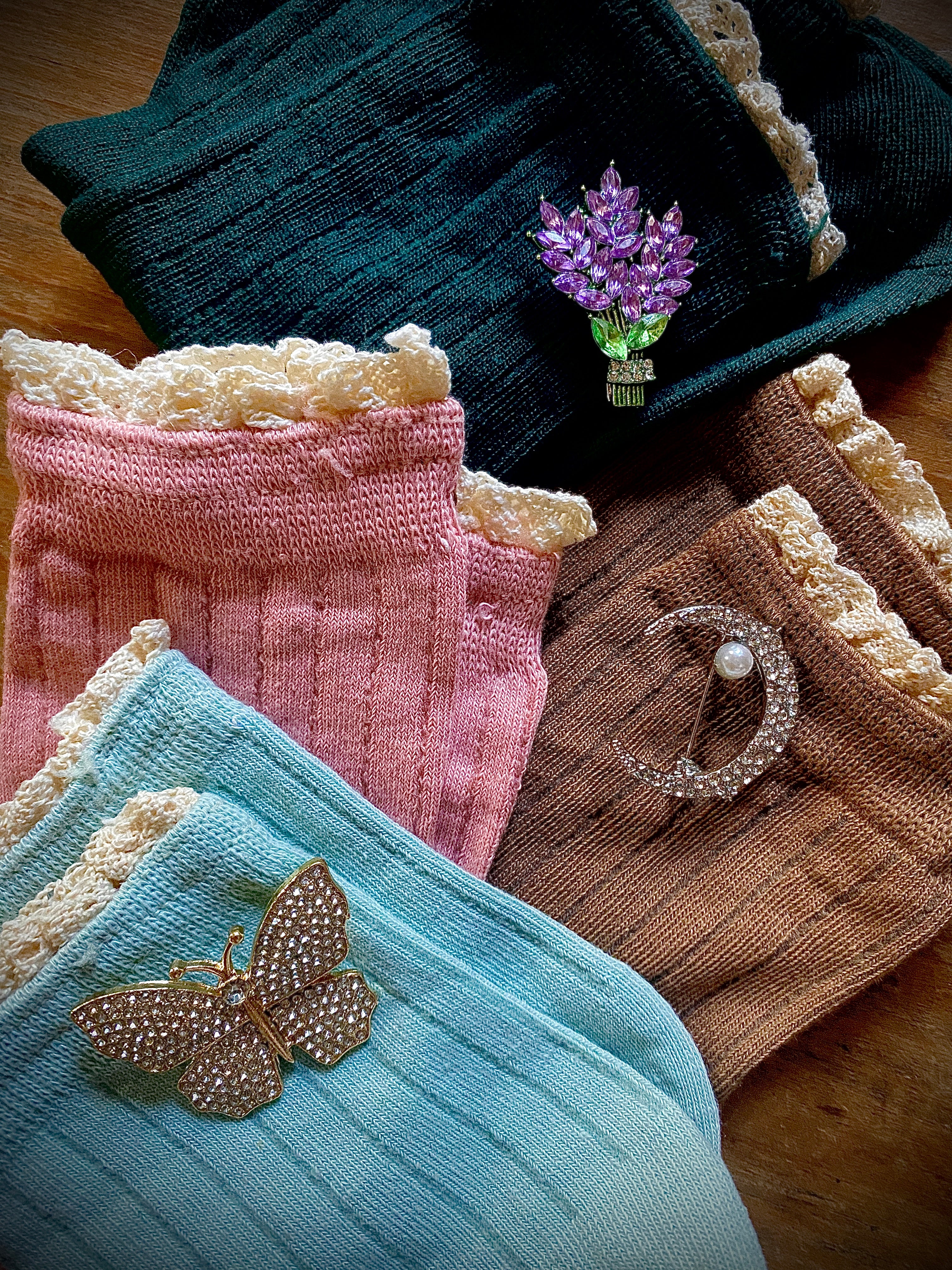 You know who you are…our newfound friends from Quora. Please add this to your shopping card and use your discount code (quora) and receive a pretty pair of socks alongside a glistening brooch (these may vary from what is shown) with your first order. Welcome to Hopeless Romantic!