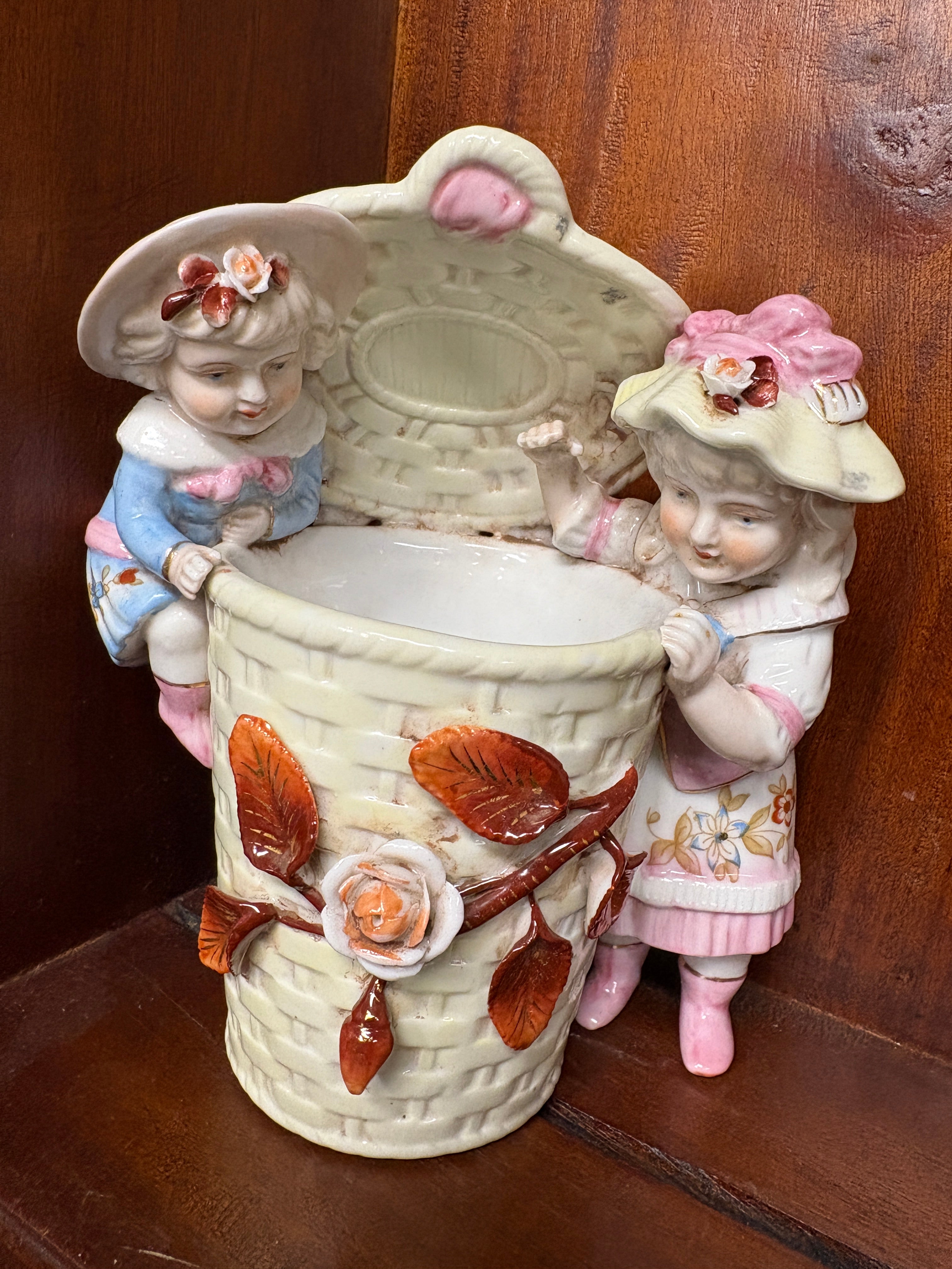 Once used to harbor wooden matches, this sweet stash welcomes cotton swabs and candy. Cast in exacting detail from a coveted bisque porcelain family heirloom.