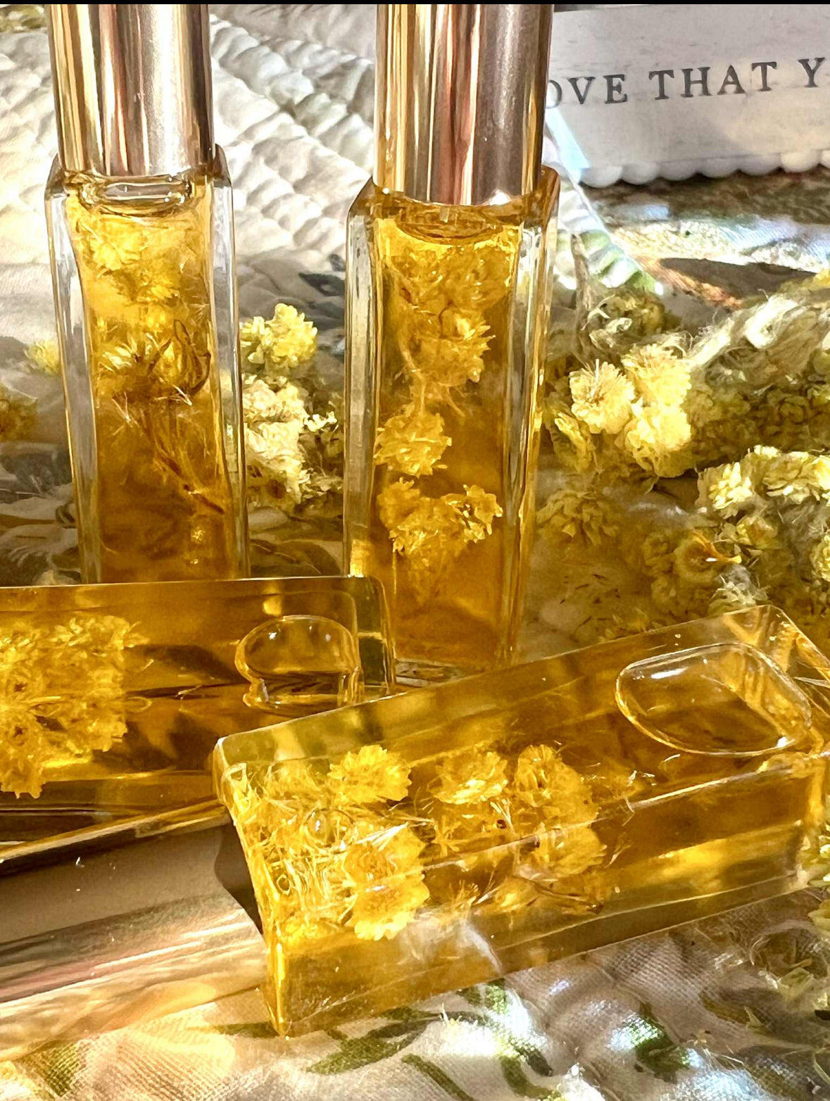 This one was a true floral labor of love. I wanted to create a pure skin oil, free from any synthetic anything..just nature's finest plant magic for radiant, healthy, protected skin. Although an oil blend, it's deeply hydrating, your skin will drink in the emollients tor a sott texture. Frankincense oil alone has a powerhouse of skin benefits and its earthy grounding scent just seems to punctuate the season.