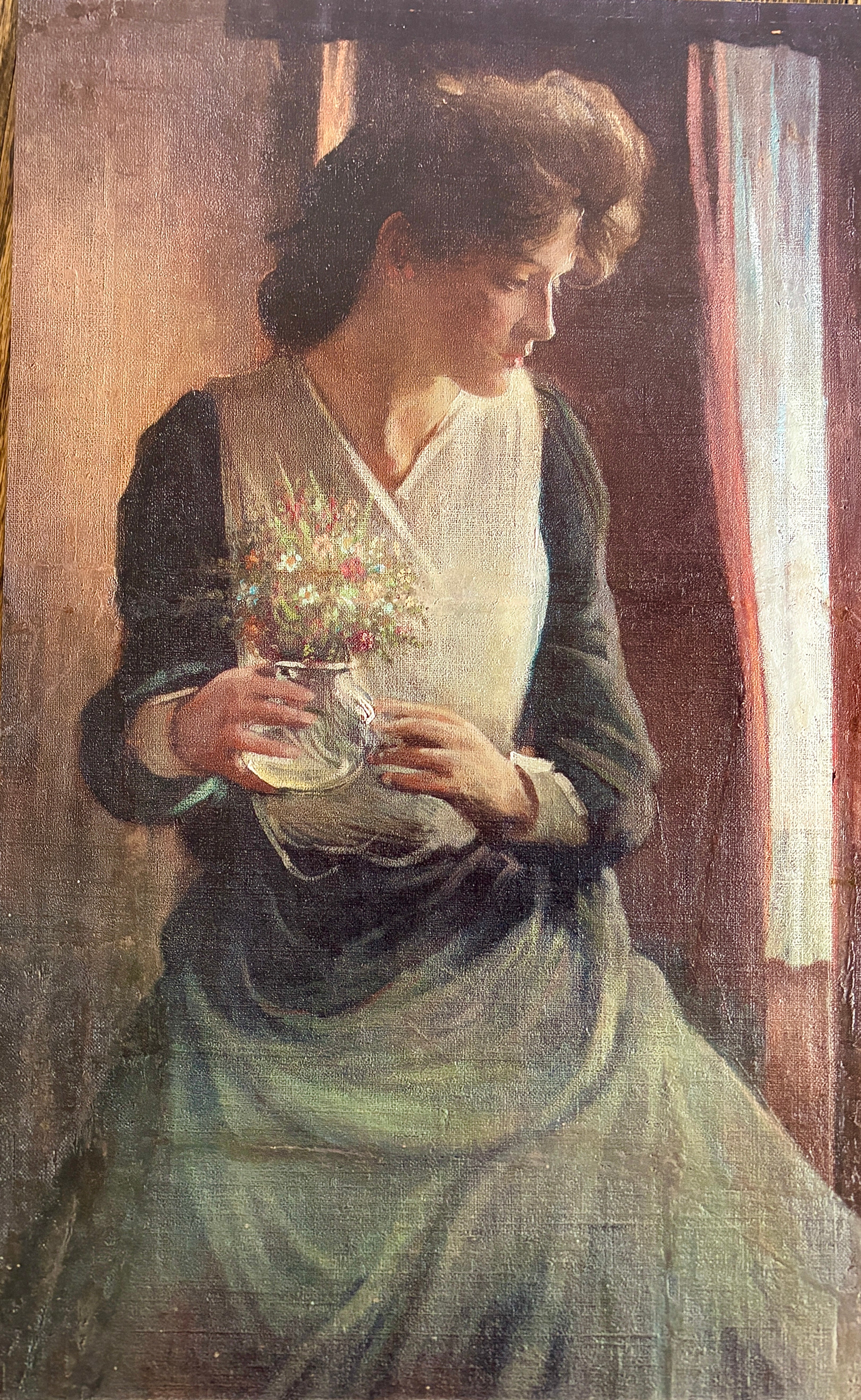 I remember the first time my eyes glimpsed this. While madly searching for art to grace the cover of our Victorian Trading Co Spring issue, I chanced upon her. The serene beauty is clutching at a vase of dainty March sprigs, sparse blooms that announce winter’s retreat (even though Kansas City received a March snowfall yesterday…we will be having a White St. Paddy’s). This will remain in my Top Ten favorite VTC catalog covers. 🤍