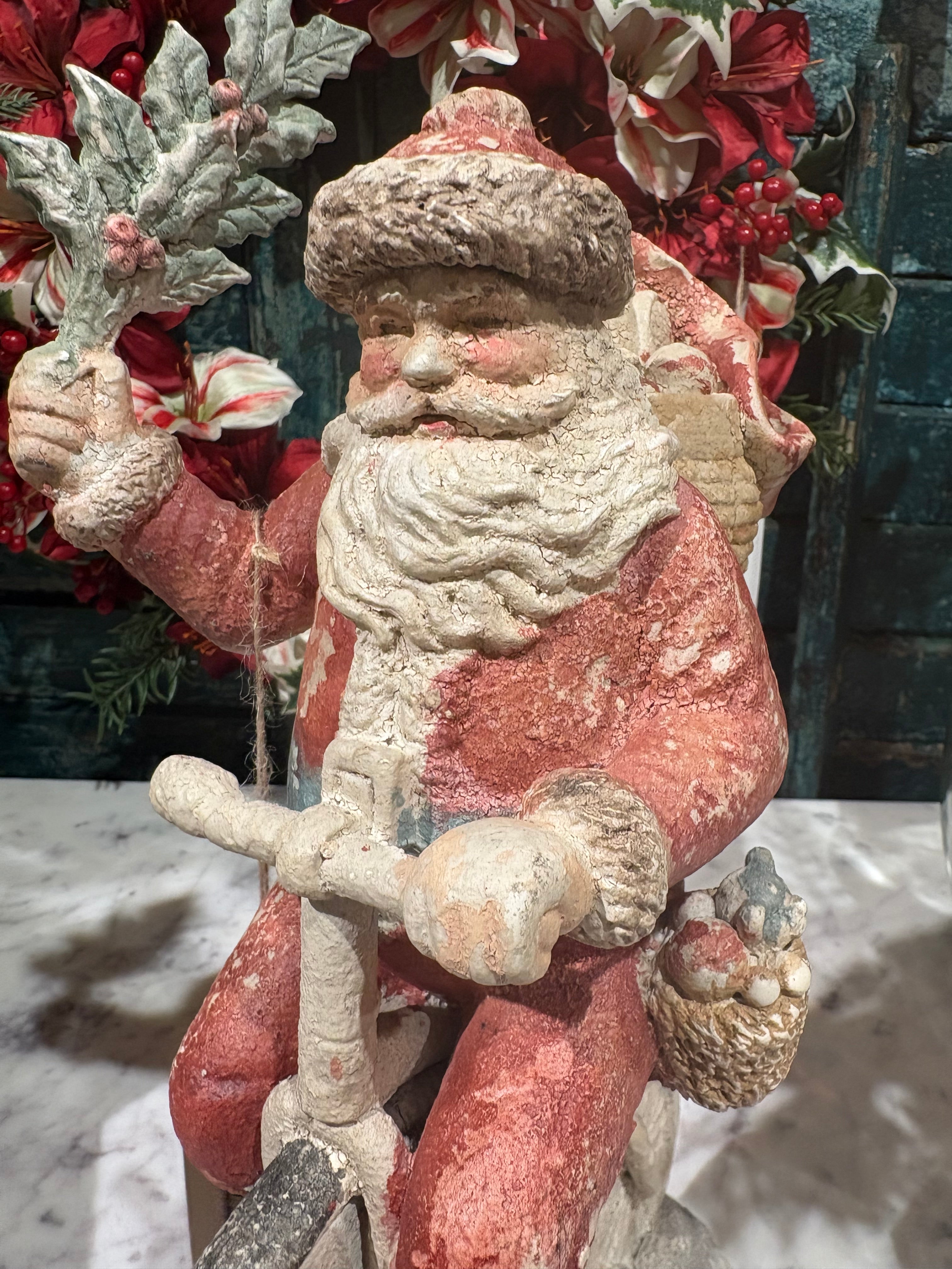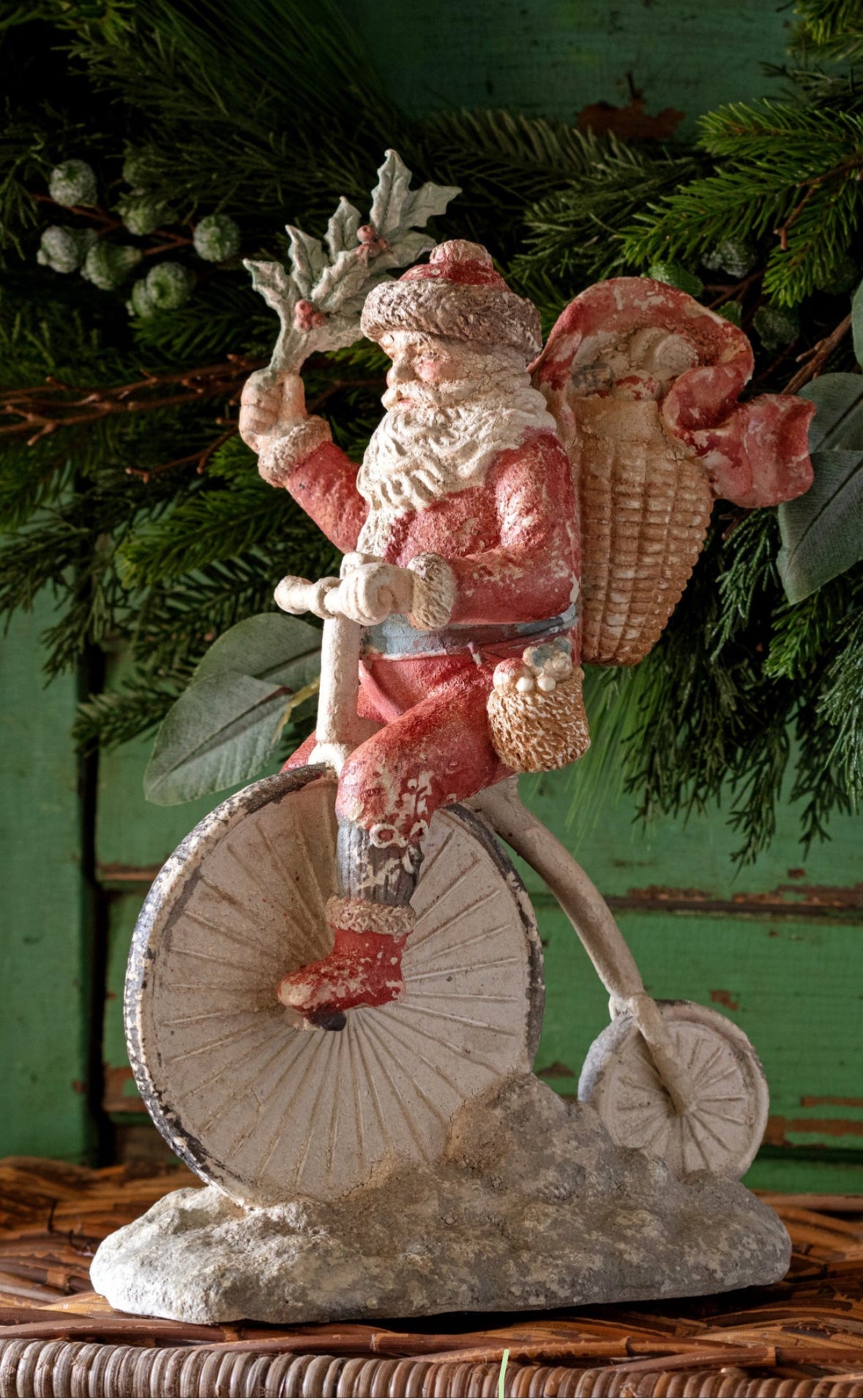 This dapper little fellow with a bag full of cheer is coming to town and is sure to steal your heart. An heirloom quality piece, this will be a favorite for years to come. Limited supply so make haste before this jolly old elf rides off into the sunset. 15 inches tall. Free Shipping!