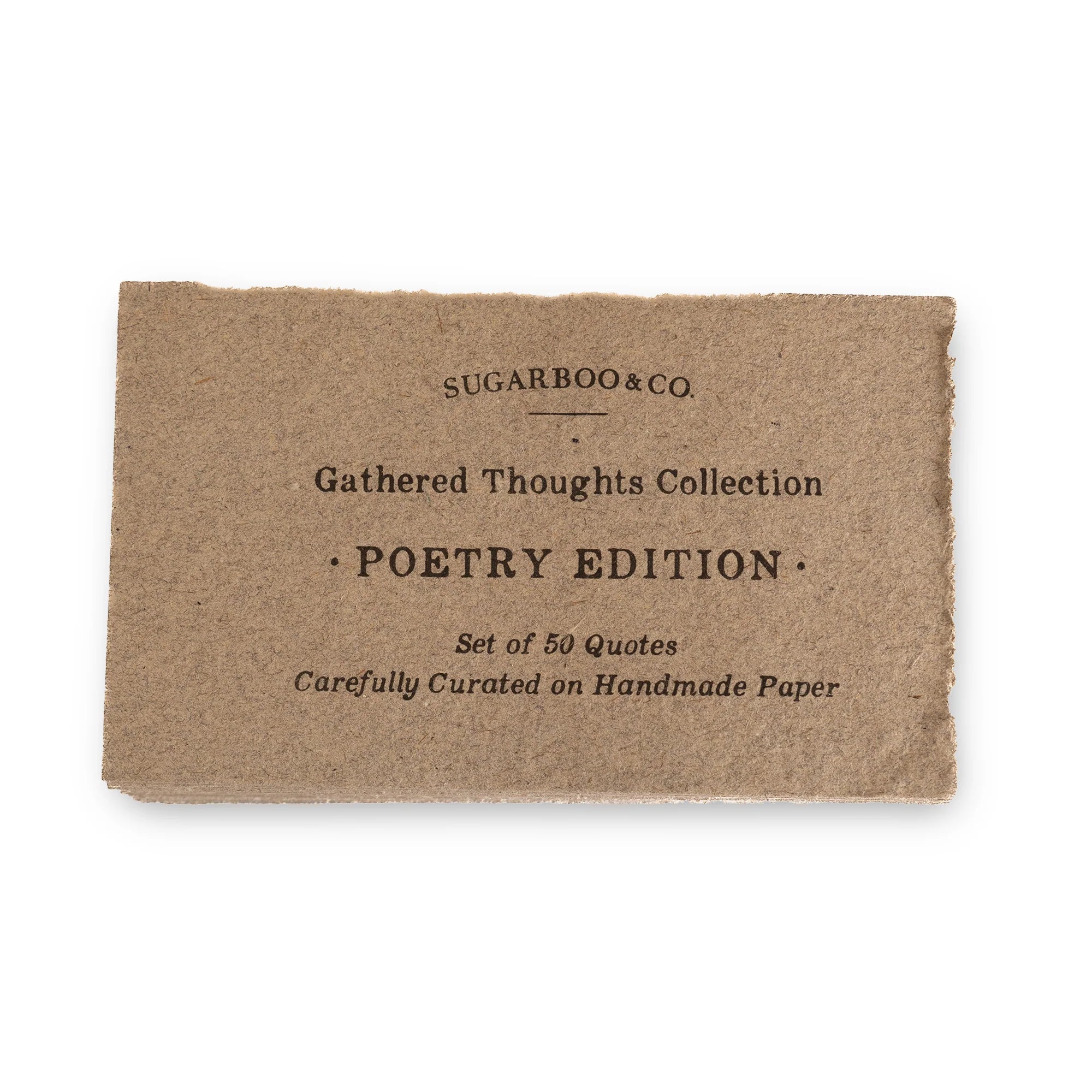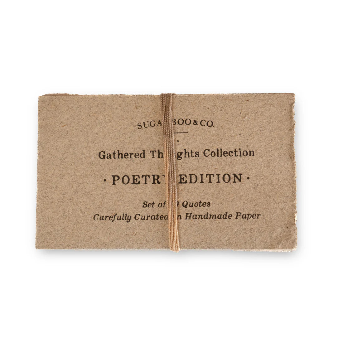 A curated collection of poems is bound and makes a meaningful gift for the literary lover in your life. When picked at random, the universe speaks to your everyday through the sweet sentiments of poets from the past. Also a perfect tuck in for handwritten letters or to top a special gift under a ribbon of tulle. Set of 50 quotes carefully curated on handmade paper
