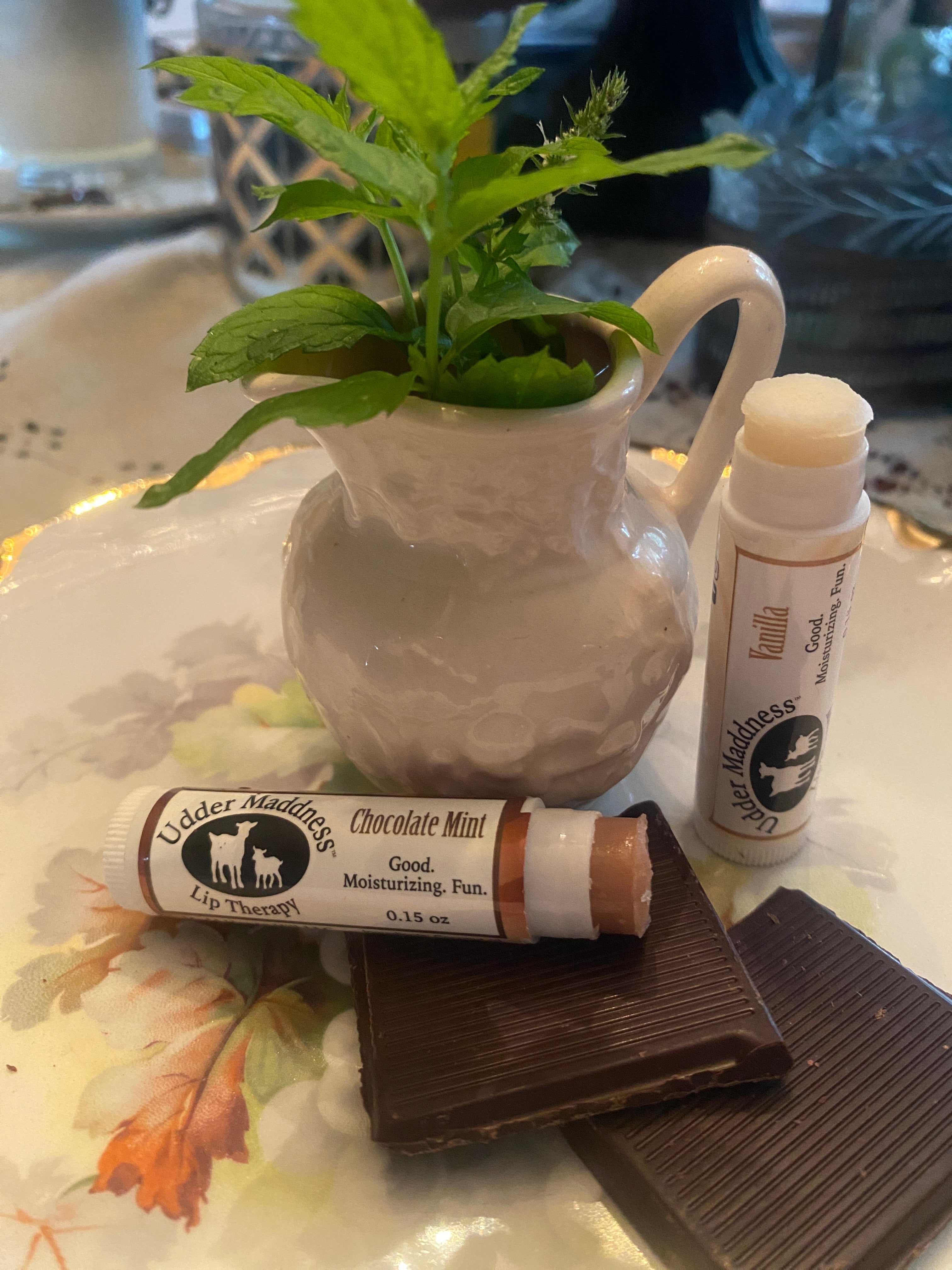 Soothe and nourish your smile, and invite a “desserty” kiss…you’ll feel as though you’ve been sipping a creamy milkshake for hours. A pair of lip balms are infused with chocolate mint and vanilla. Our local goat farm creates this organic lip therapy using goatsmilk, moisturizing oils, raspberry seed oil for a natural sun block and essential oils. This family farm names their goats and offers wholesome, natural soaps, deodorant and other products available through Hopeless Romantic discover our Orange Clove Goatsmilk Soap, Lavender Mint Deodorant, Lavender Mint Insect Repellant, Peppermint Foot Lotion Stick and other emollients from a sweet local family farm.